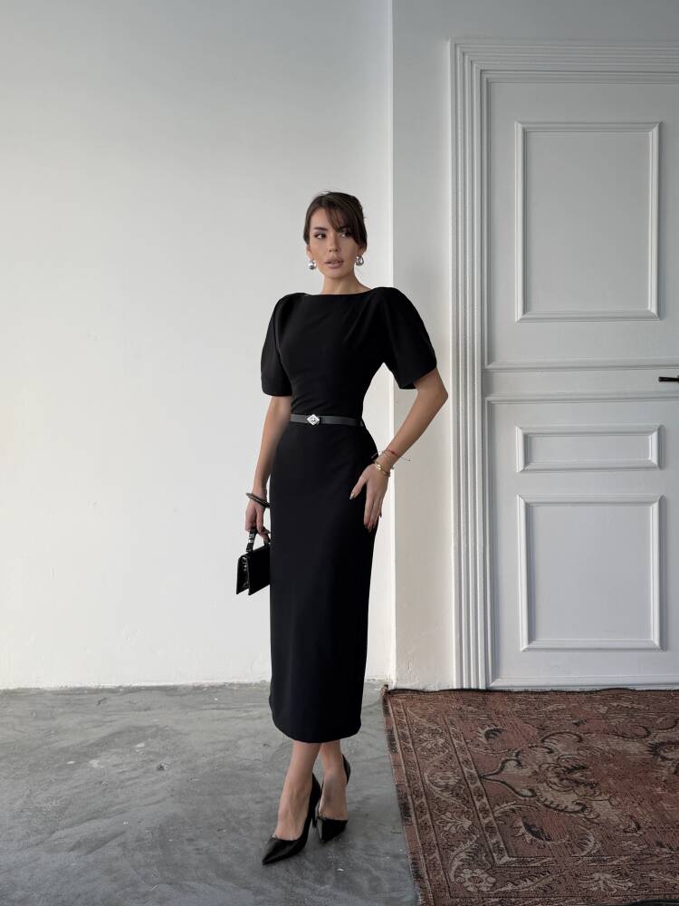 AVA Midi Elbise 3101 - Siyah