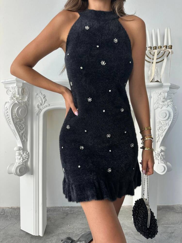 BETALİS Taşlı Triko Elbise 245011 - Siyah
