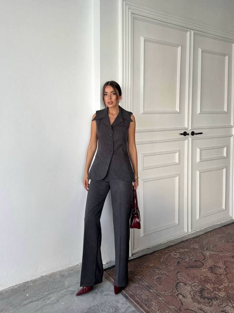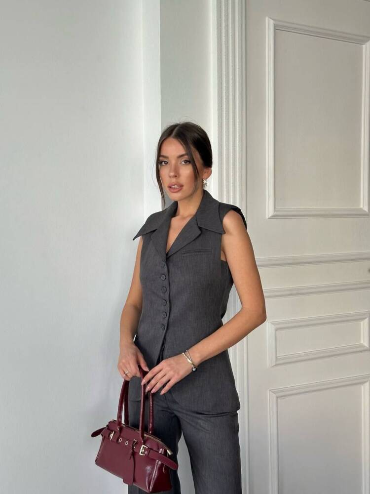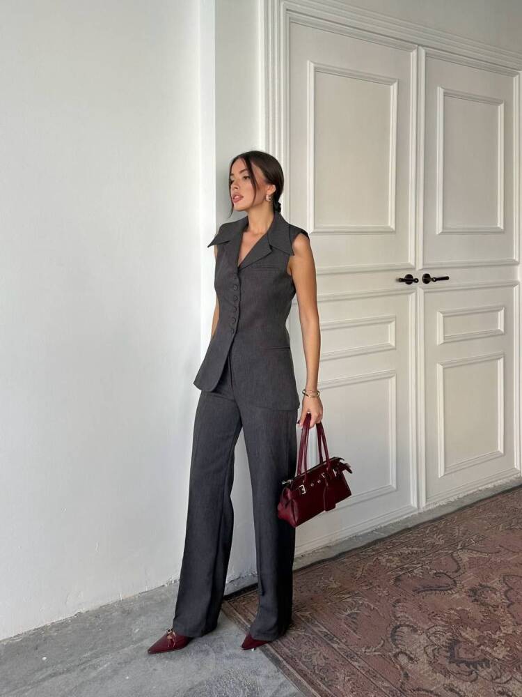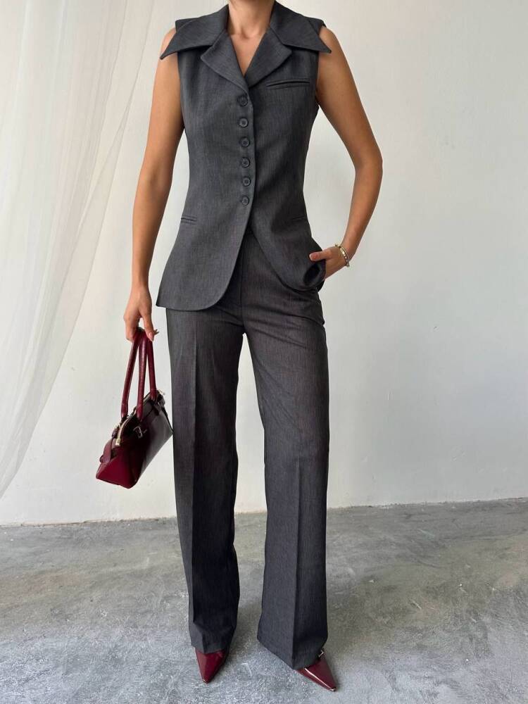 BONTİ RETRO YAKA İKİLİ ATLAS ANTRASİT TAKIM