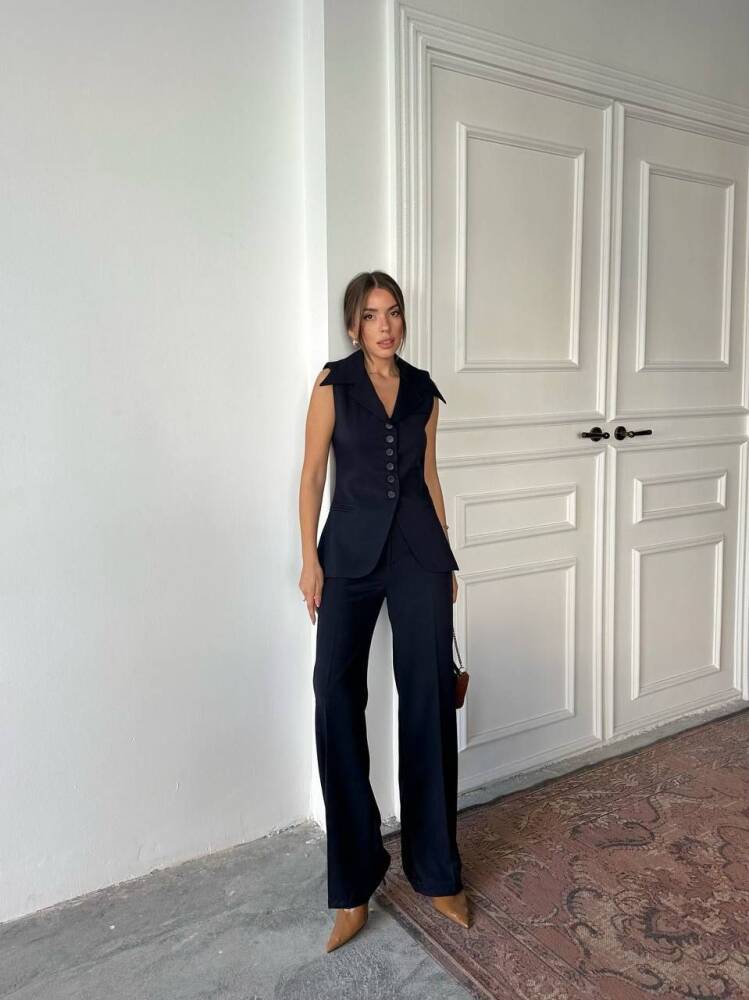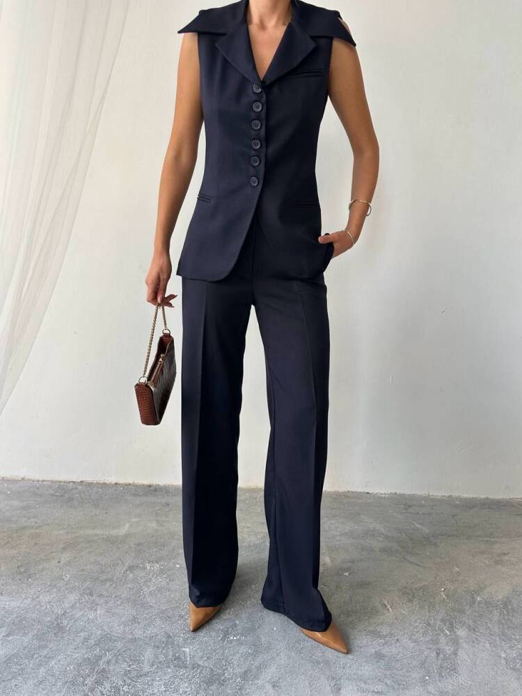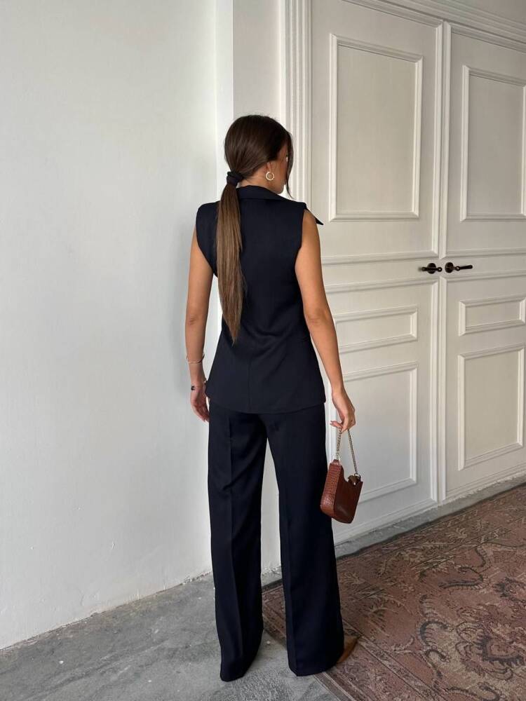 BONTİ RETRO YAKA İKİLİ ATLAS SİYAH TAKIM