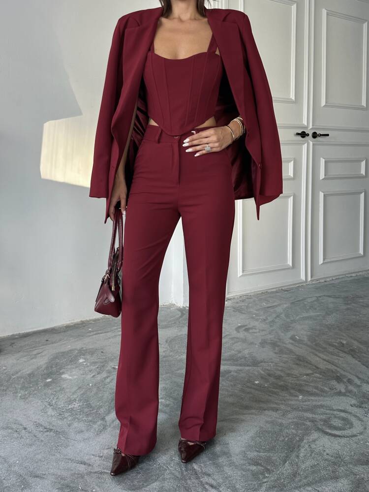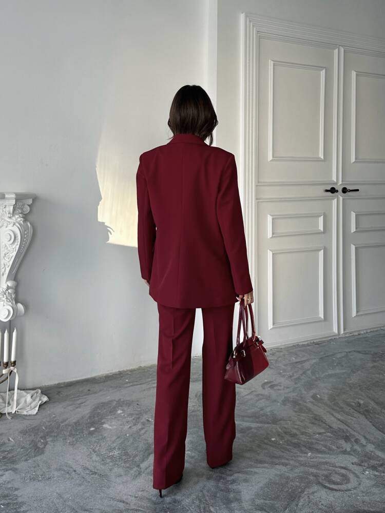 CARNAT Crop Ceket Pantolon Takım 2239 - Bordo