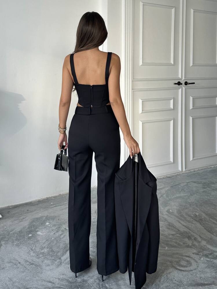 CARNAT Crop Ceket Pantolon Takım 2239 - Siyah