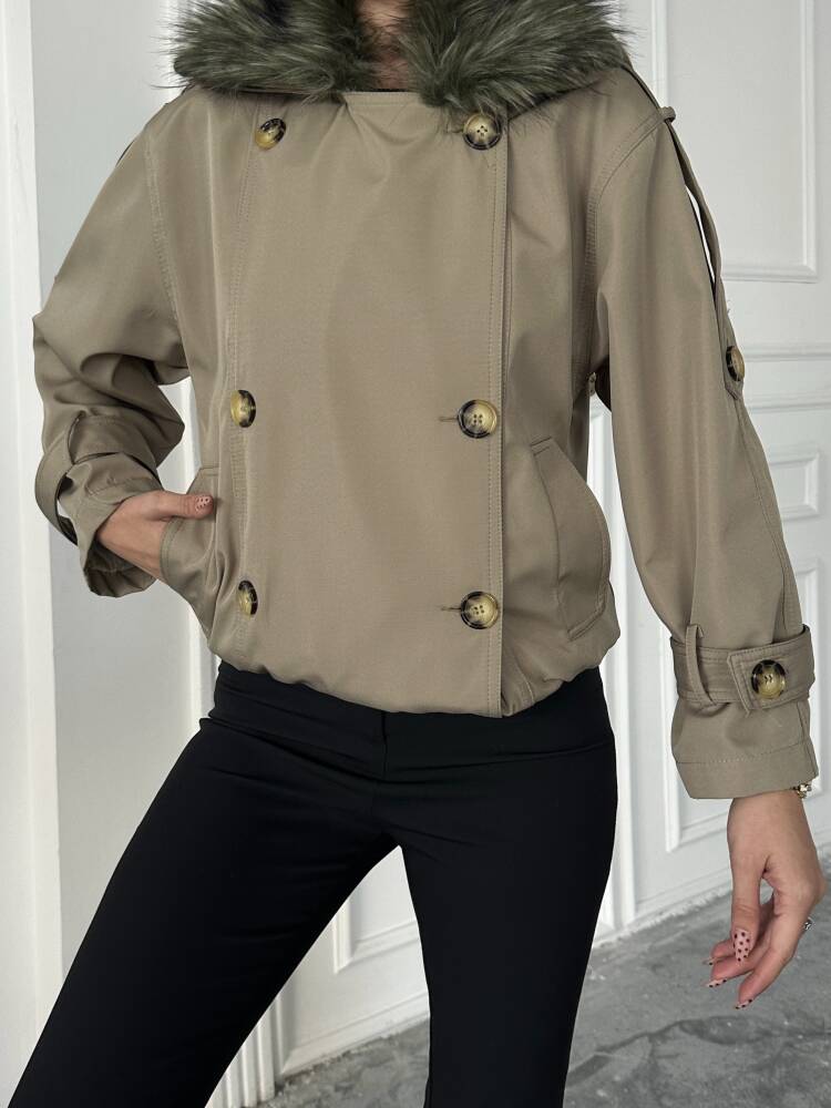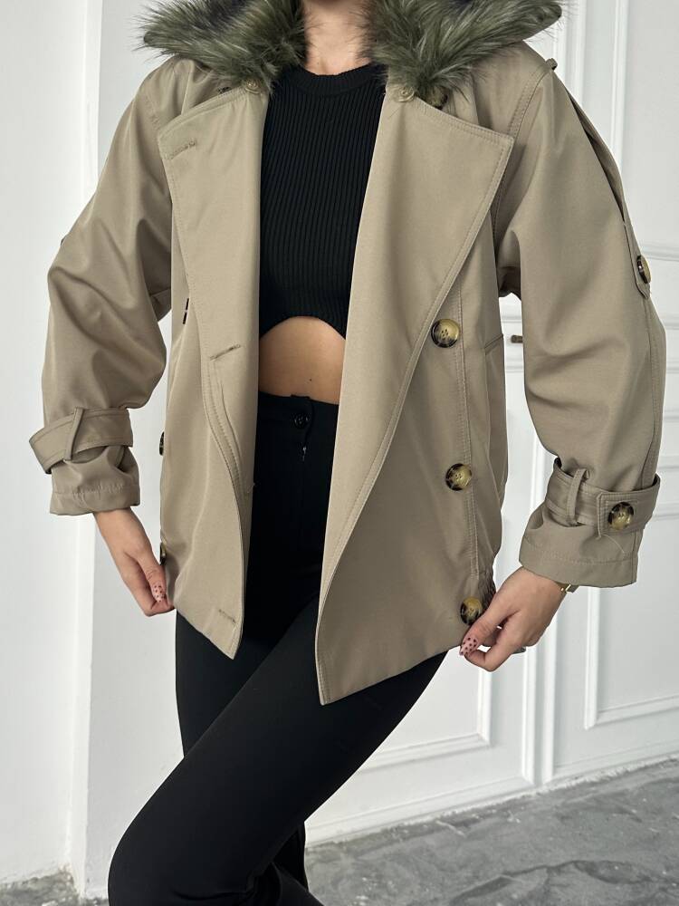 CASSA Kürk Detaylı Trenç tam kalıplıdır.
