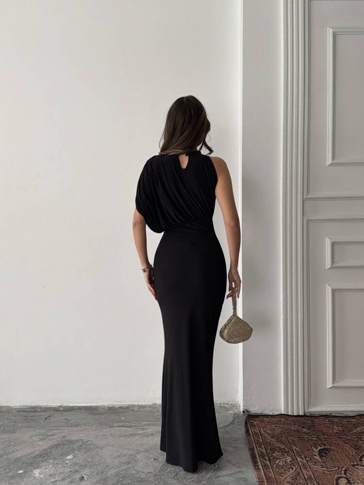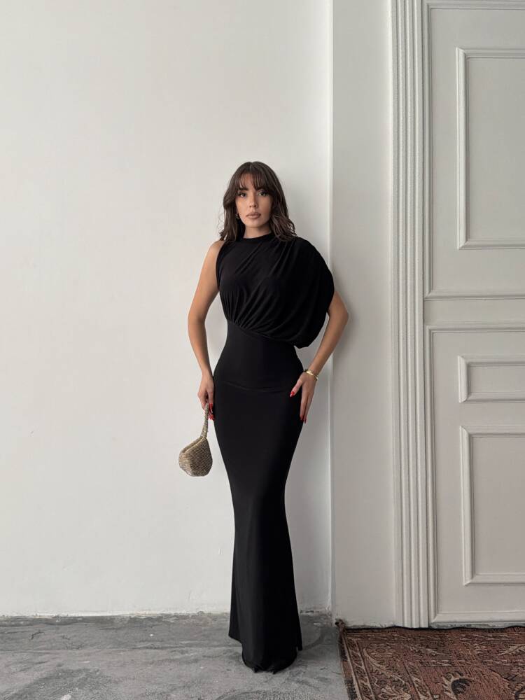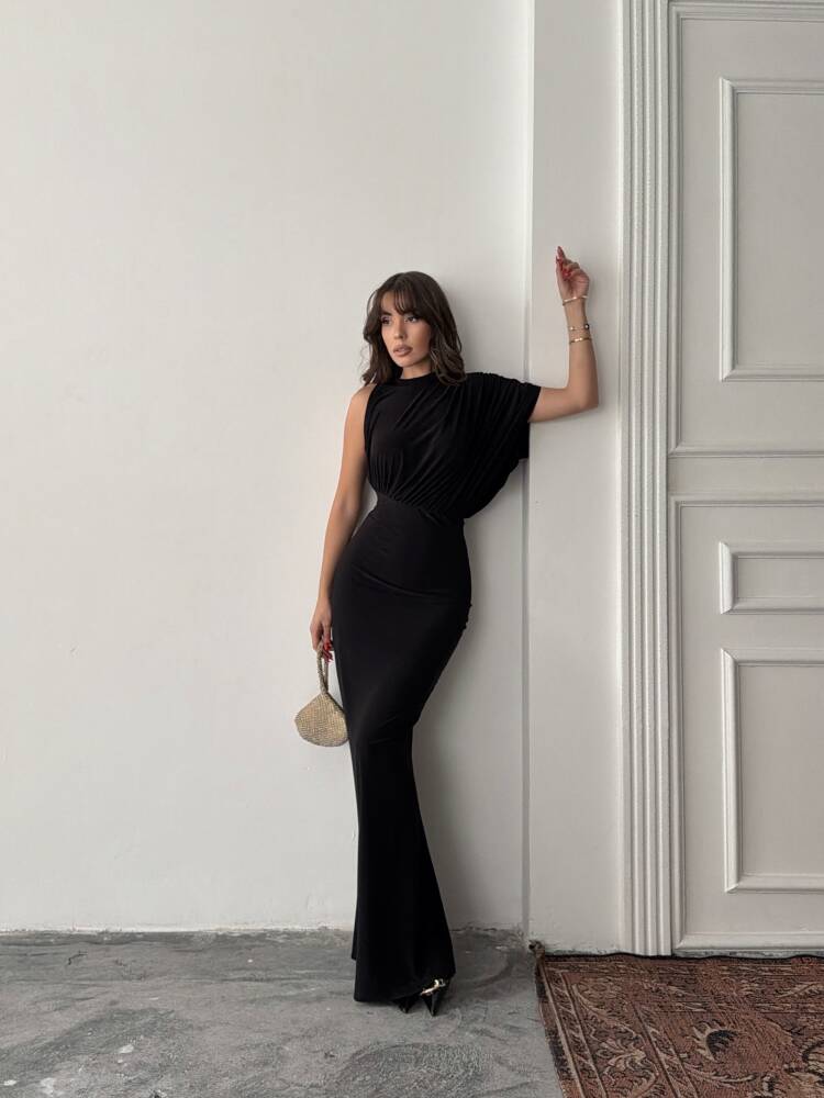 CHARLOTTE Tek Omuz Elbise 3086 - Siyah