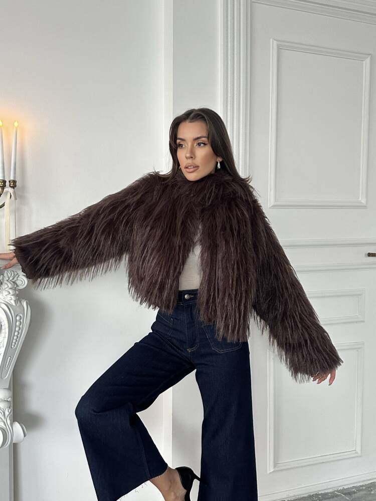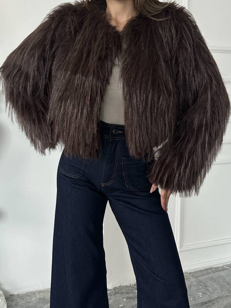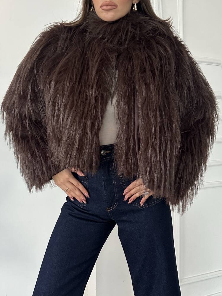 ELİANA Atkılı Kürk Ceket 3080 - Acı Kahve