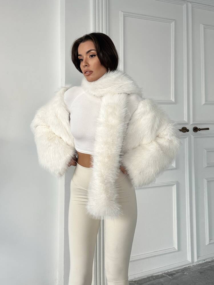 ELİANA Atkılı Kürk Ceket 3080- Beyaz