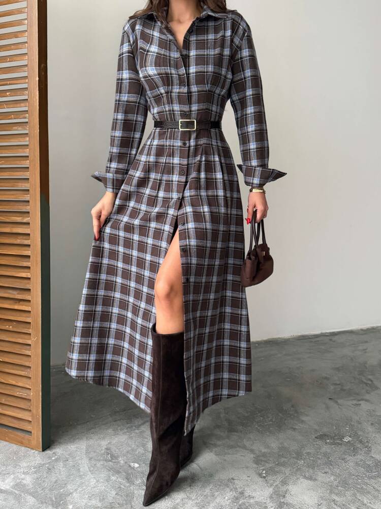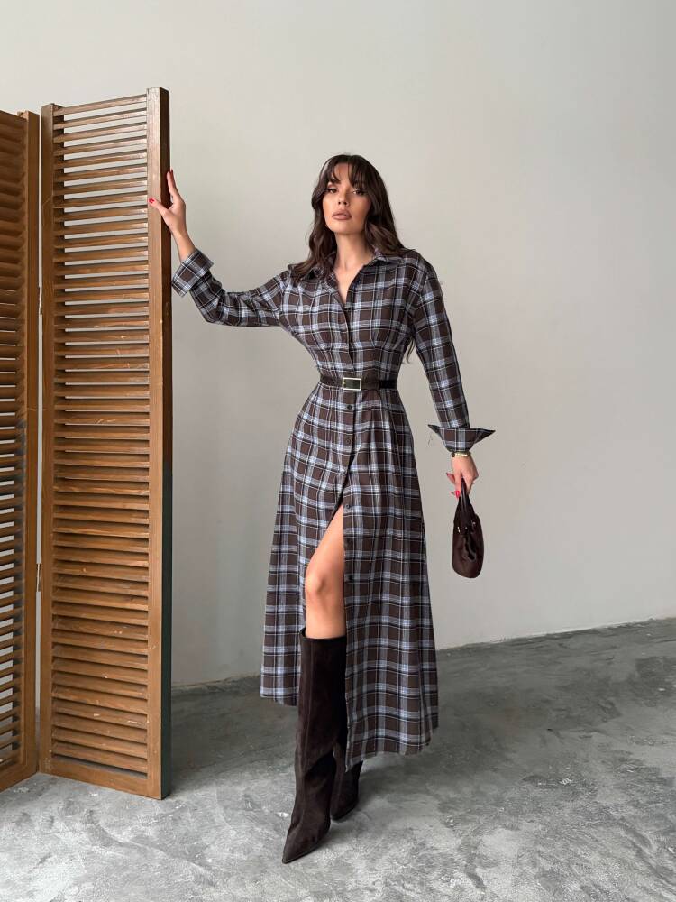 EMERY Midi Elbise - 1290 - Acı Kahve