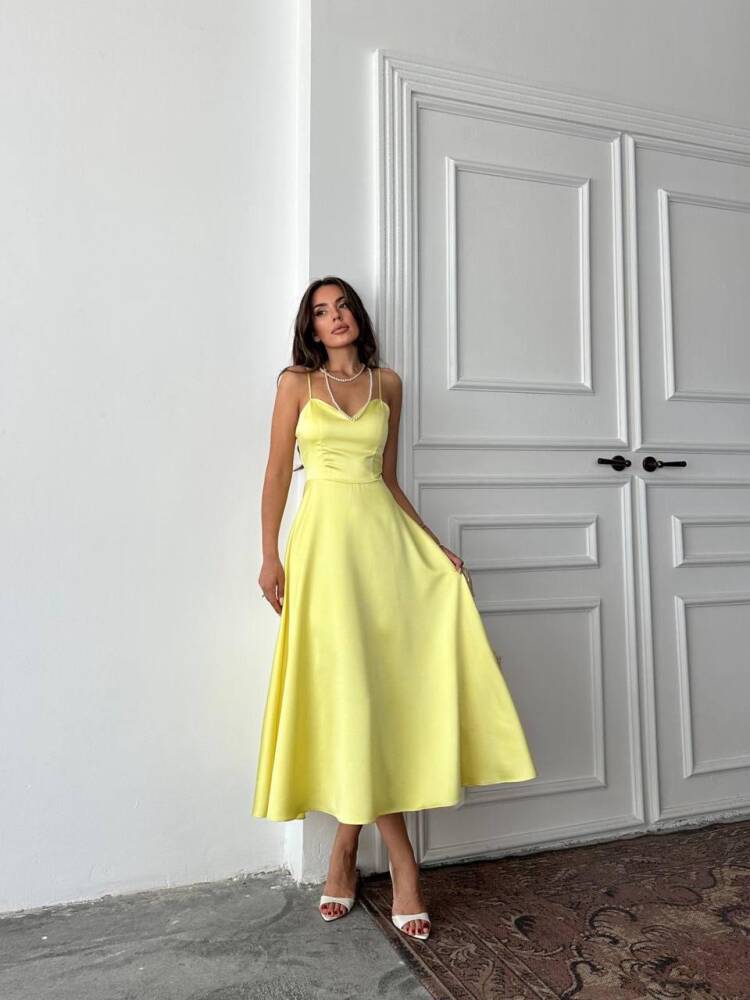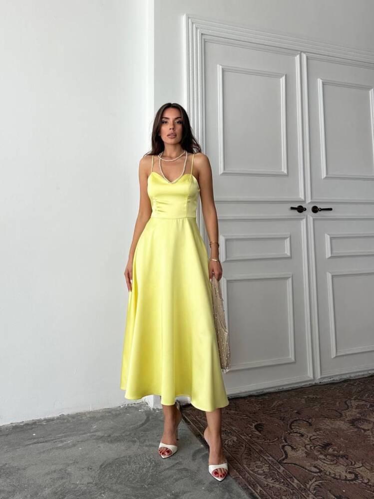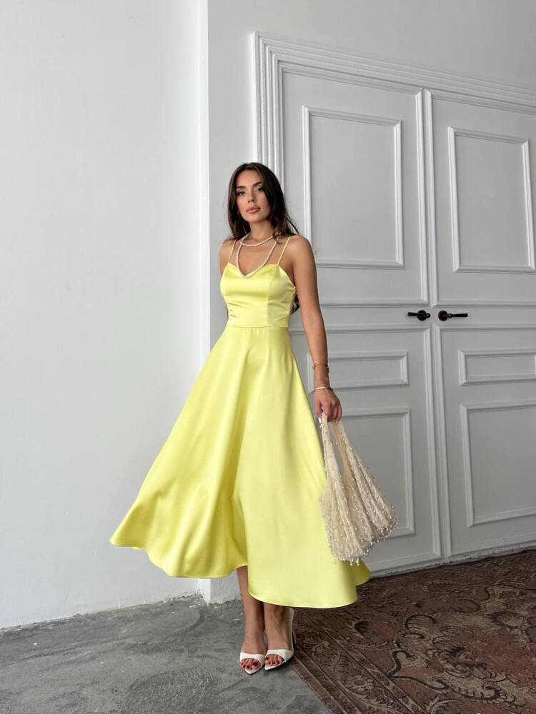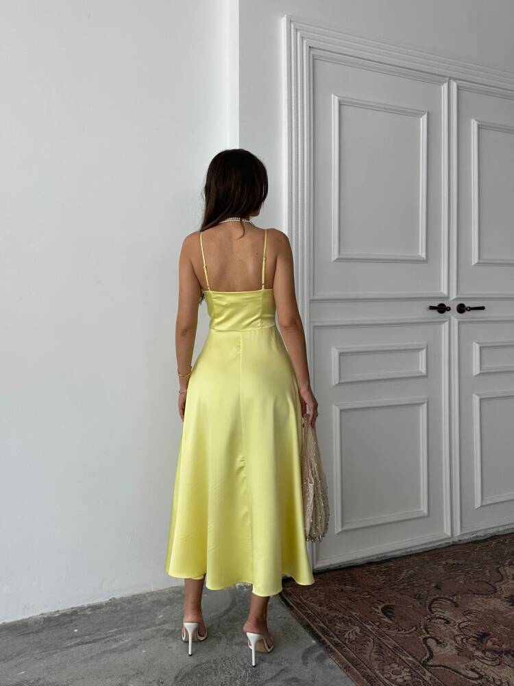 HANAN SATEN ASKILI MİDİ PRENSES SARI ELBİSE
