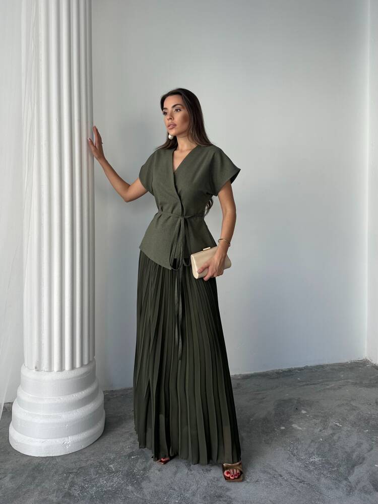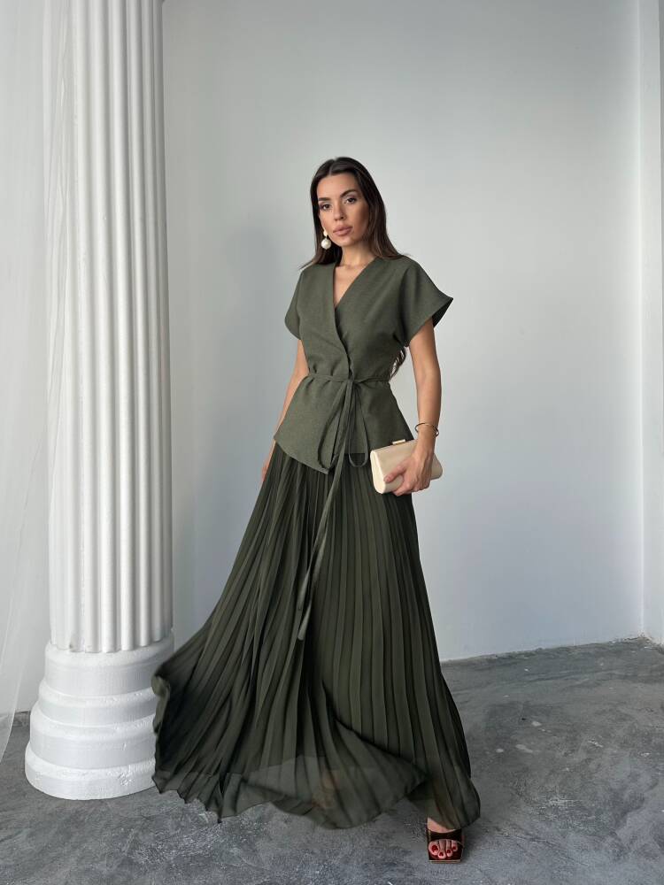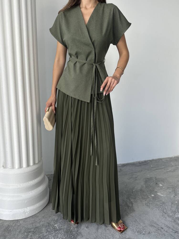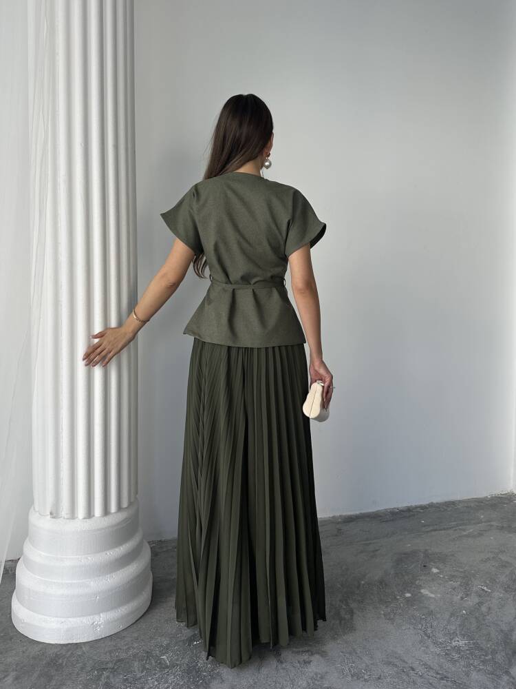JESERA PİLELİ MAXİ ETEK KUŞAKLI CEKET HAKİ TAKIM