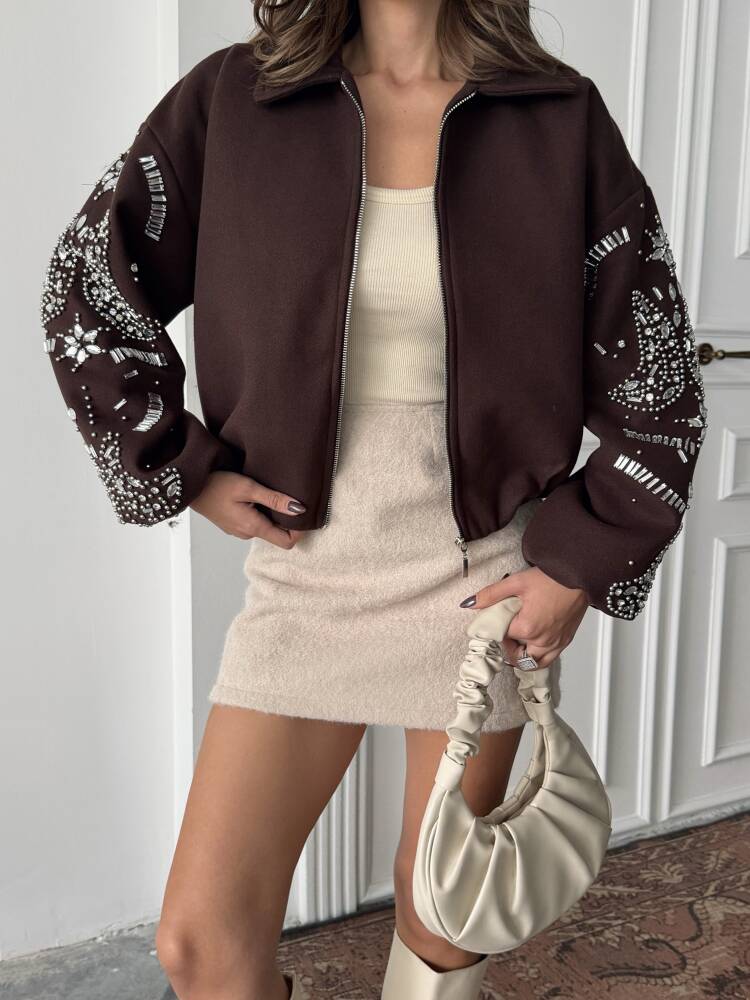 NASTUR Bomber Taşlı Ceket 5274 - Acı Kahve