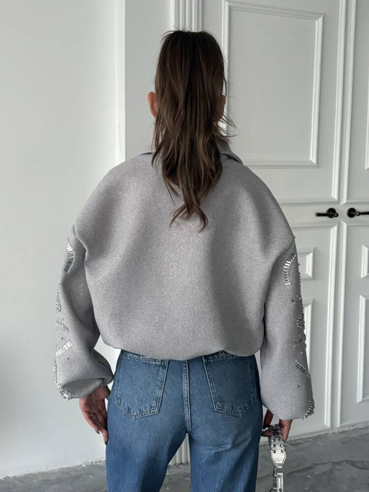 NASTUR Bomber Taşlı Ceket 5274 - Gri
