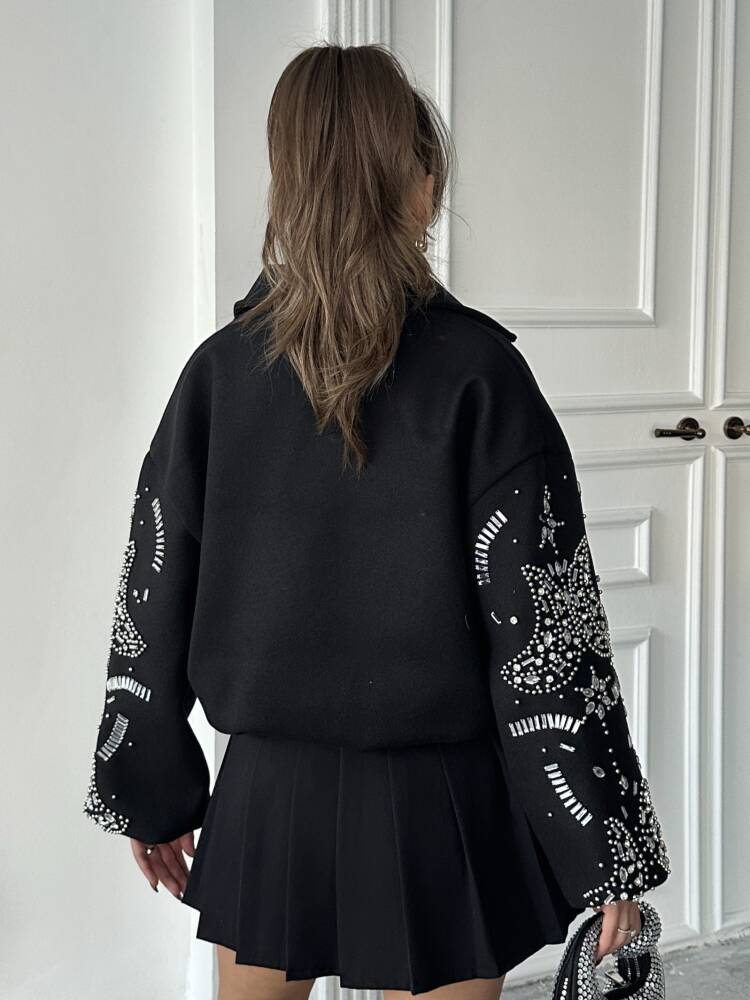 NASTUR Bomber Taşlı Ceket 5274 - Siyah