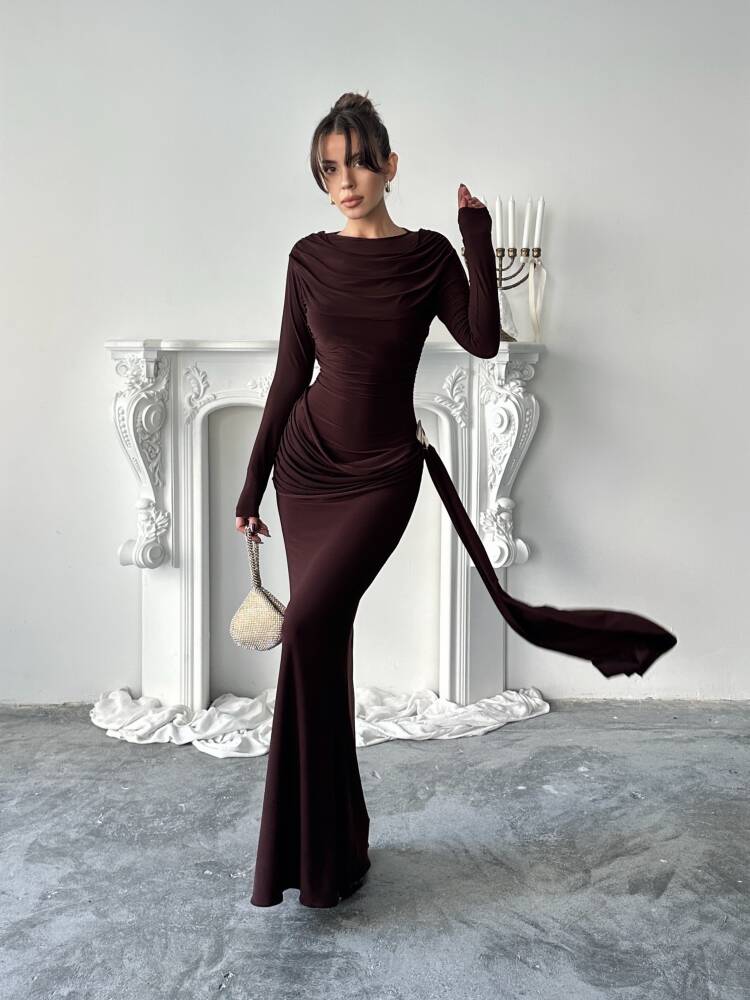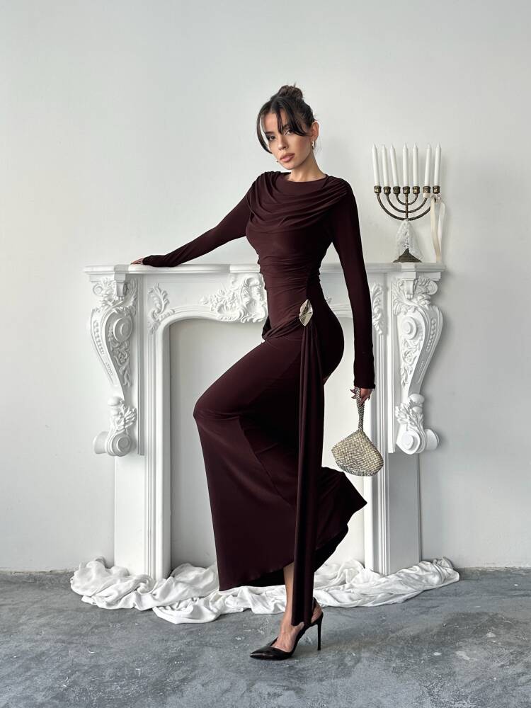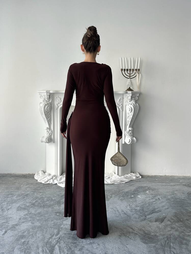 NOVA Maxi Elbise 3079 - Acı Kahve