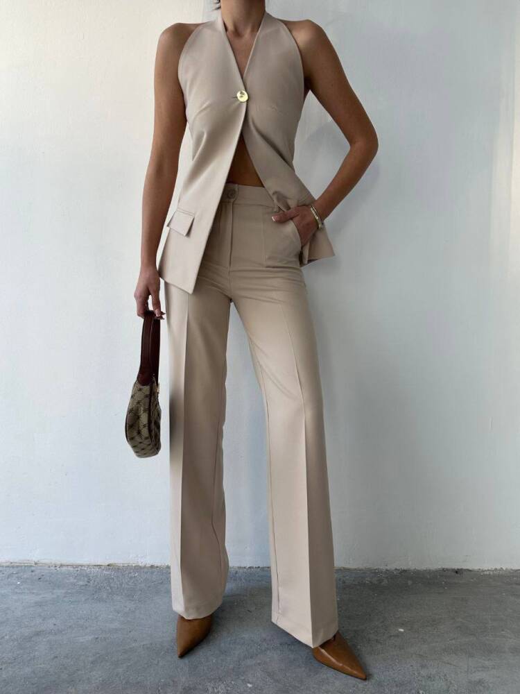 PABEL SIRT DEKOLTELİ ATLAS GOLD DÜĞMELİ KUMAŞ VİZON TAKIM