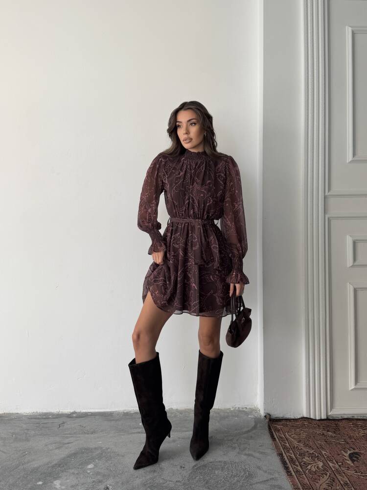 PİTA Şifon Elbise 1286 - Acı Kahve