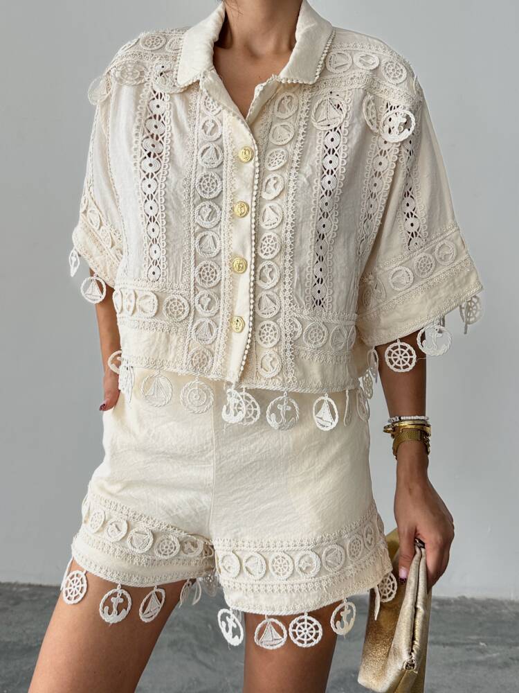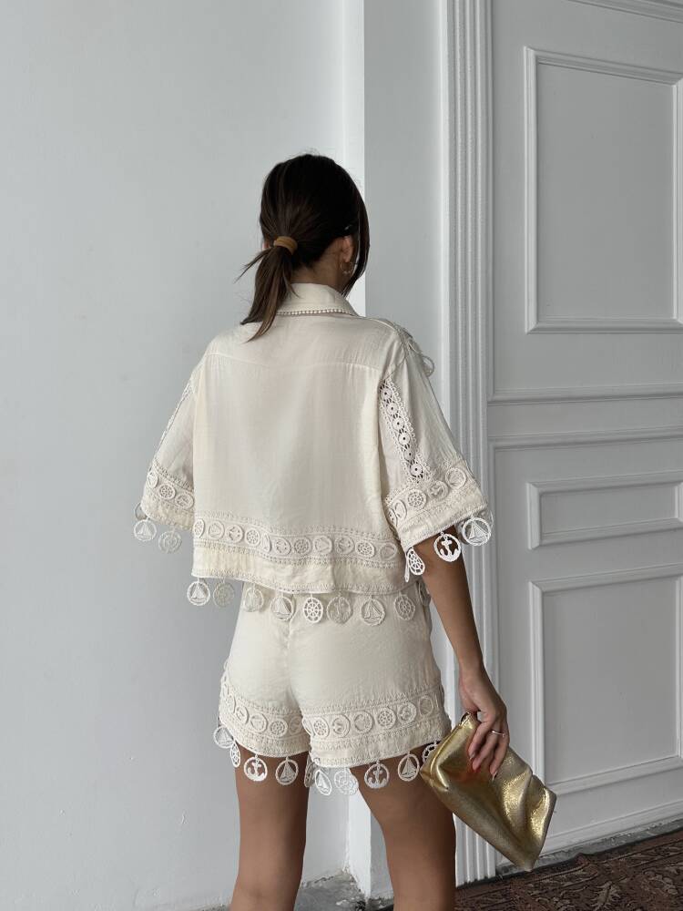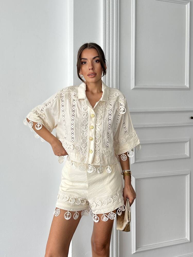 PRİMROSE Gömlek - Şort Takım 2224 - Ekru
