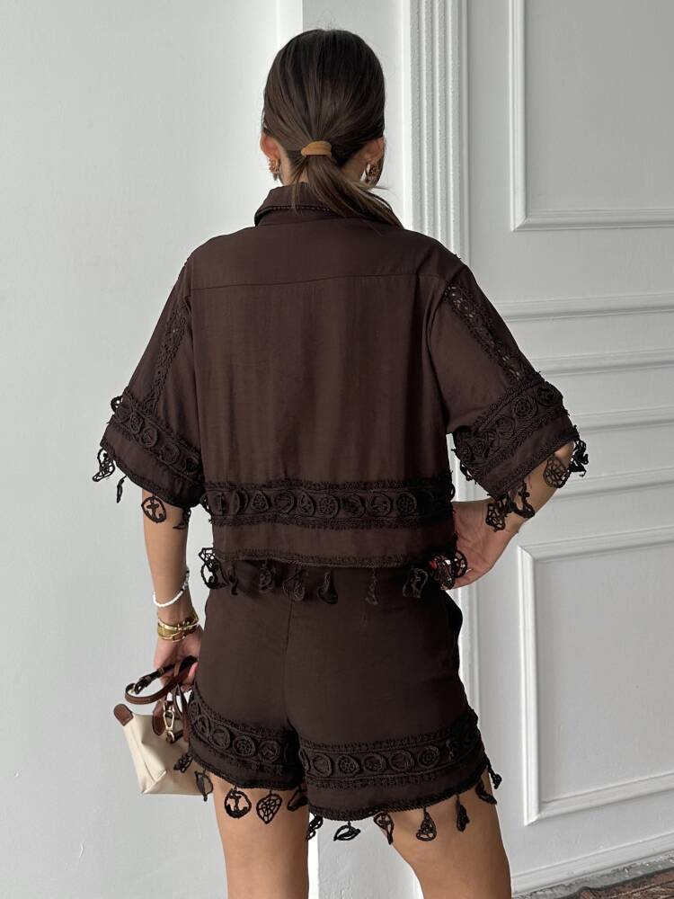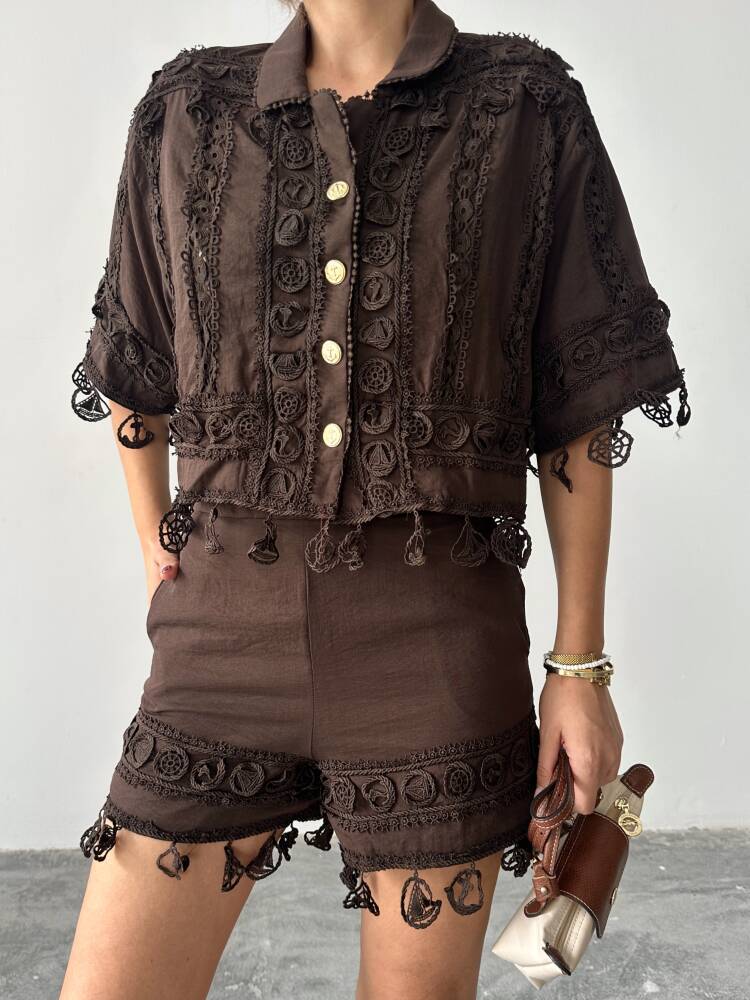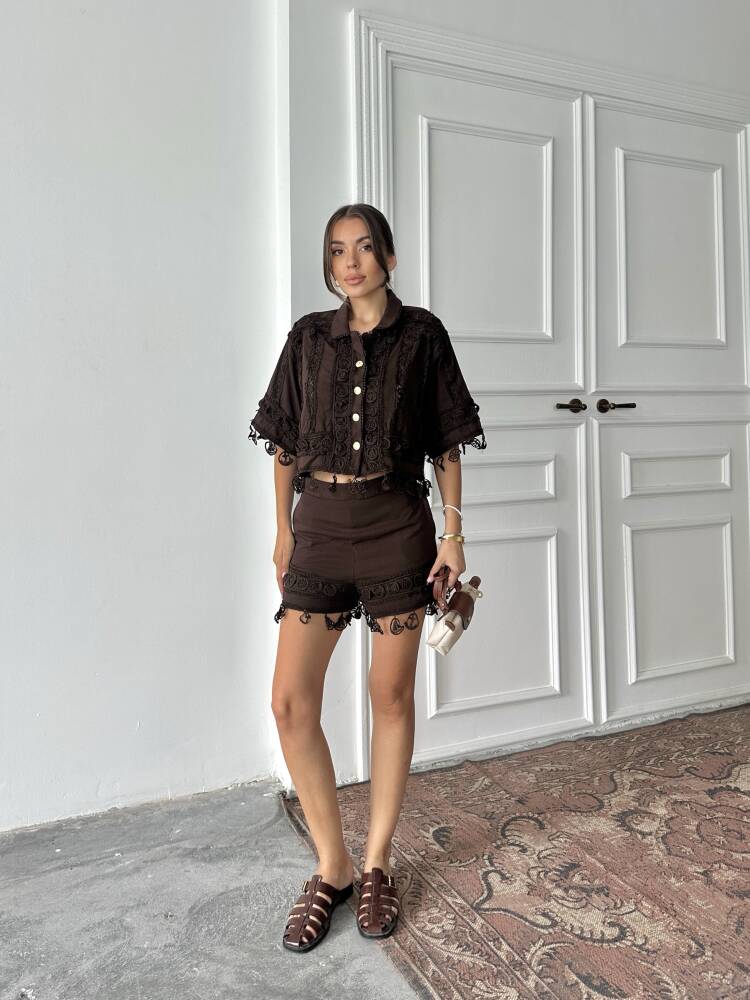 PRİMROSE Gömlek - Şort Takım 2224 - Kahverengi