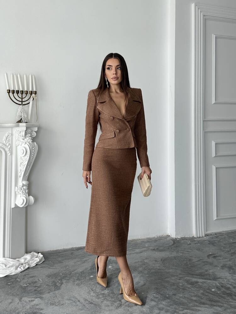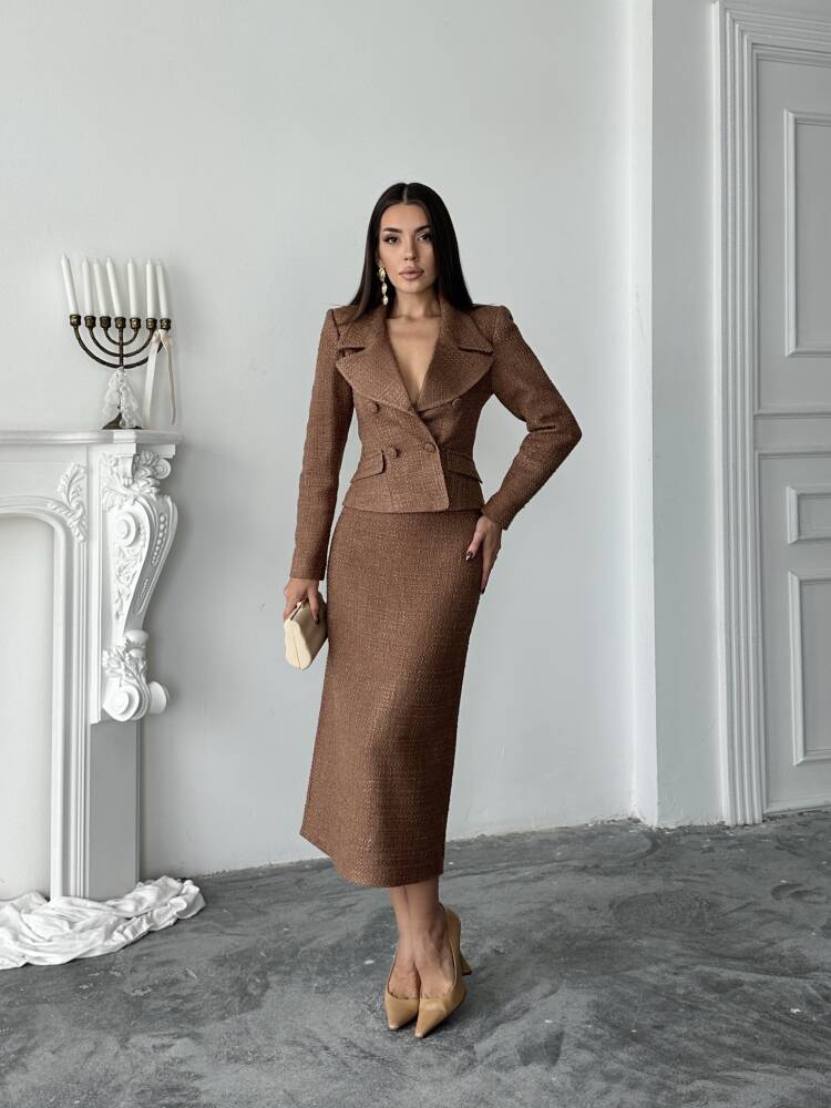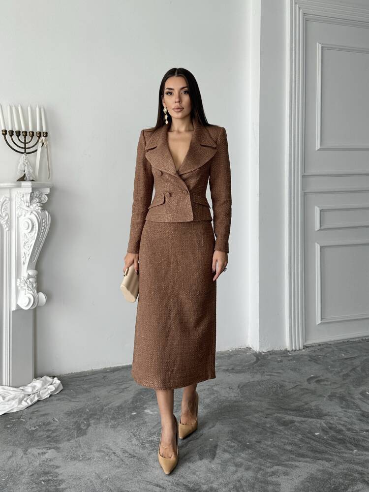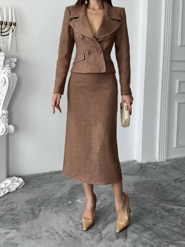 PRİMULA Ceket Etek Takım 2264 - Kahverengi
