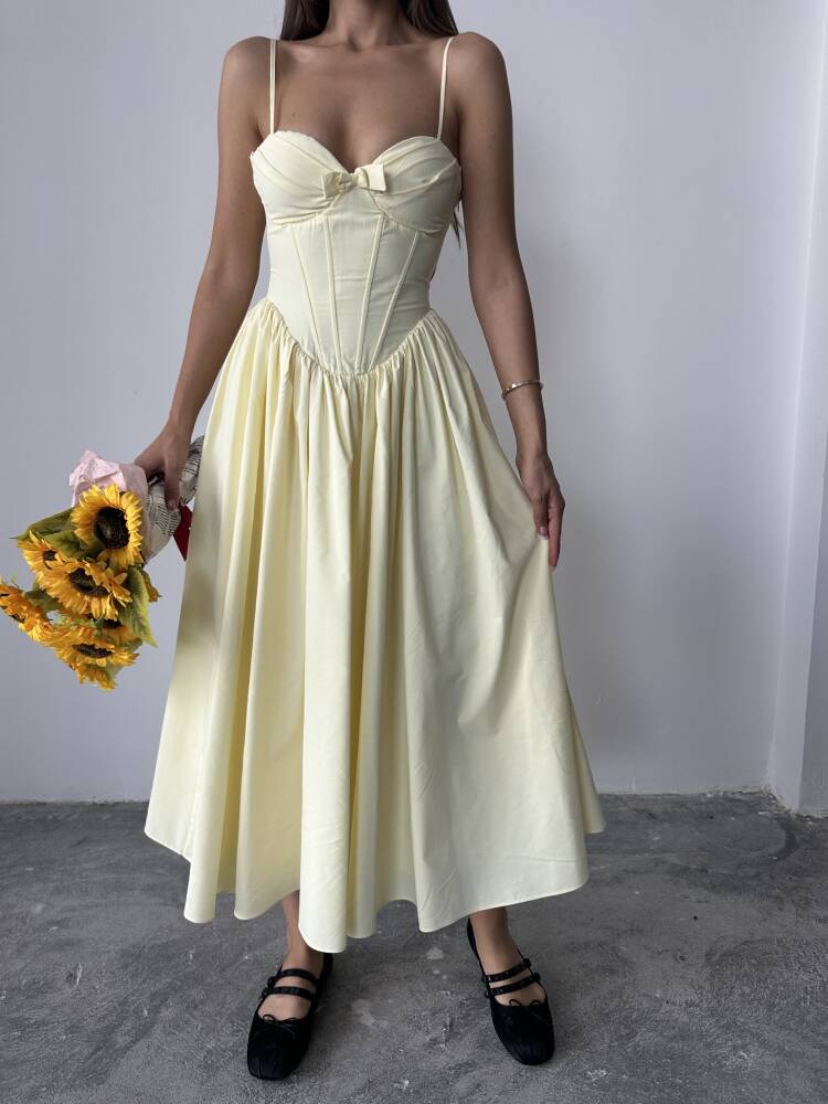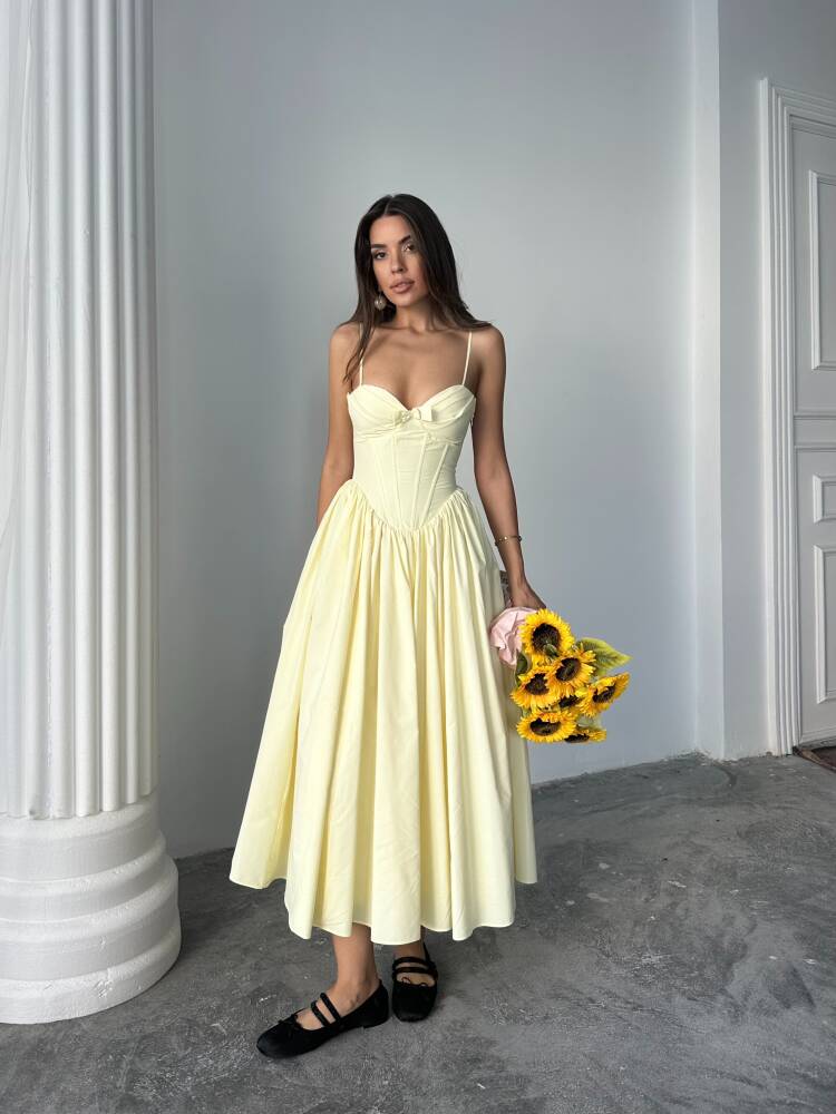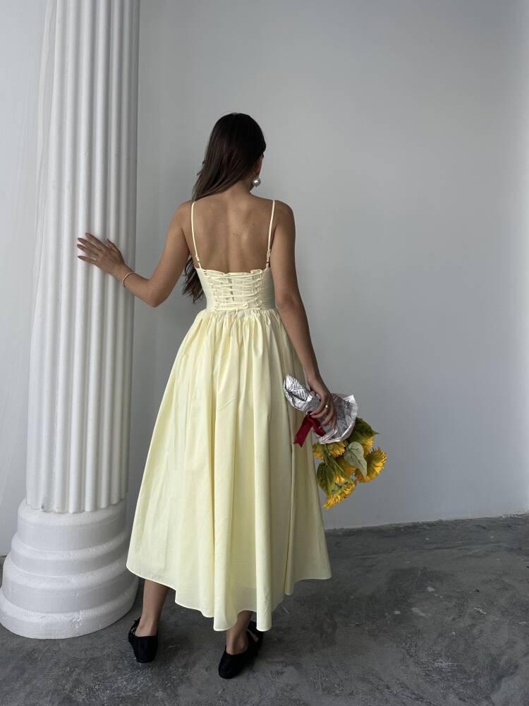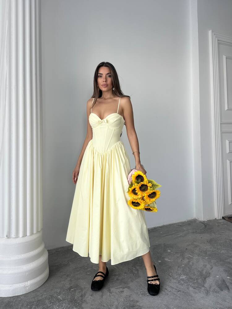 ROSESA KORSAJ DETAY MİDİ POPLİN SARI ELBİSE