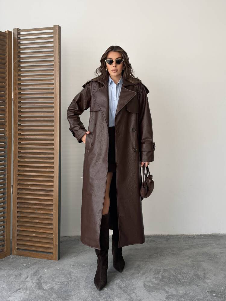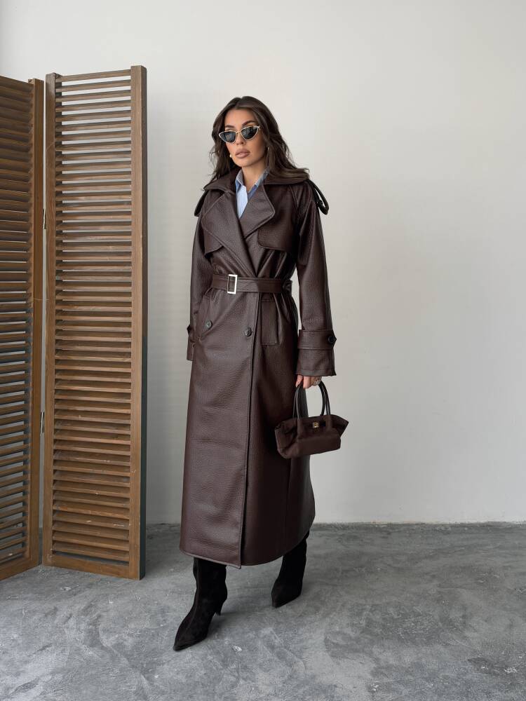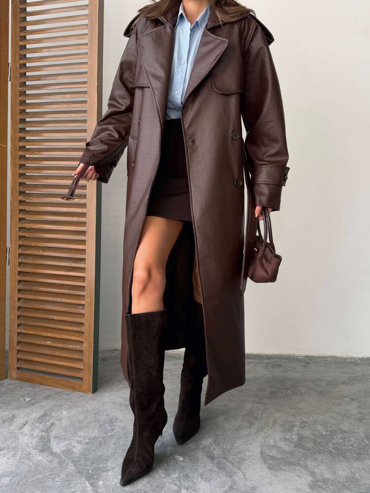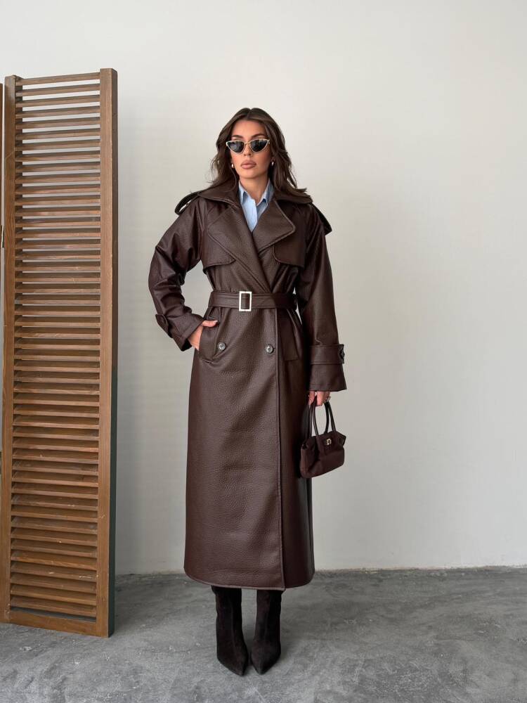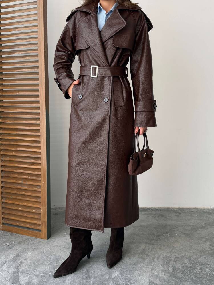SUGARO Desenli Deri Kaban 5285 - Acı Kahve